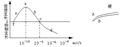 如图所示,如果根A侧的IAA(生长素)浓度在曲线 a点(10-10mol/L),下列对B侧IAA浓度范围的描述正确的是