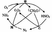 下图表示甲、乙、丙三类微生物在生态系统碳循环和氮循环中的作用。有关叙述中错误的是