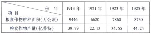 31、下表是苏俄新经济政策实施后农业生产的恢复和发展情况,从中我们可以得出的结论不包括