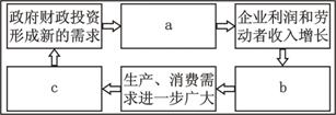 10.财政投资乘数效应是指政府财政投资支出的每1元,通过市场可以形成大于1元的对物品和劳务的总需求。下图是财政投资乘数效应的过程示意图。根据所学经济生活知识,图中a、b、c处依次应该填入