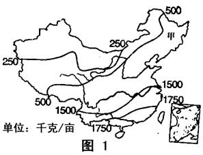 农业生产潜力是指单位面积土地上每年所能获得的最大可能产量。图1是我国农业生产潜力分布简图,读图回答1-2题。
