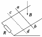 (2009·象山北仑两地适应性考试)如图16所示, 两根光滑的金属导轨平行放置在绝缘斜面上,导轨的下方接有电阻R,导轨的电阻不计.斜面所在的空间有竖直向下的匀强磁场.质量为m、电阻不计的金属导体棒放在导轨上的ab位置,经过一段时间,导体棒从ab位置由静止开始自由运动到导轨上的cd位置.在此过程中,下列说法正确的是 ( )