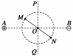 (2009·昆明市5月适应性检测)如图19所示,O点是等量异种点电荷A、B连线的中点,PQ是AB连线的中垂线,MN是圆O的直径,下列说法中正确的是( )