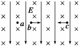 解析 a静止,则a的重力与向上的电场力相等,mg=qE,则知a带负电,b、c做匀速圆周运动,则mg与qE平衡,F向=F洛,故b、c均带负电,所以A项正确.由左手定则判知均沿顺时针方向运动,B项正确.由R= ,R∝v,故C错误.由