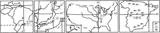(36分)北京时间2009年10月3日凌晨,国际奥委会第121次全会在丹麦哥本哈根举行.在2010年夏季奥运会主办地票选里,巴西里约热内卢通过三轮投票击败西班牙马德里,获得2016年第31届夏季奥林匹克运动会的举办权,这也是奥运会首次登陆南美大陆。下图为9月初国际奥委会公布的四个候选城市。结合所学知识回答问题。