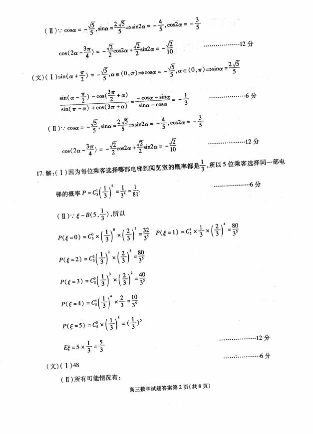 17.(12分)某市图书馆有三部电梯,每位乘客选择哪部电梯到阅览室的概率都是