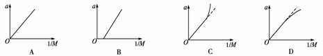 2. 在“验证牛顿运动定律”的实验中,在研究加速度a与小车的质量M的关系时,由于没有注意始终满足M≫m的条件,结果得到的图象应是下图中的( )