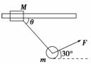 如图2-3-30所示,质量M=2 kg的木块套在水平杆上,并用轻绳与质量m= kg的小球相连.今用跟水平方向成α=30°角的力F=10 N拉着球带动木块一起向右匀速运动,运动中M、m的相对位置保持不变,g=10 m/s2,求运动过程中轻绳与水平方向的夹角θ及木块M与水平杆间的动摩擦因数.
