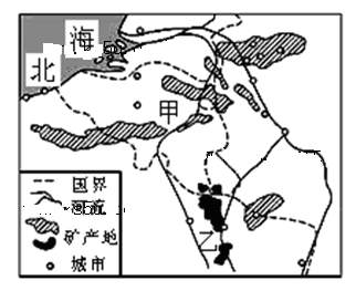12.分布在甲、乙两地区的矿产分别是 ( )