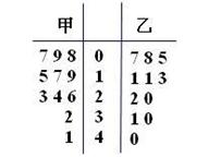 场比赛,他们每场比赛得分的情况用右图所示的茎叶图表示,若甲运动员的中位数为