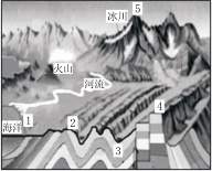 读 “某地地貌和地质剖面示意图”。回答3-4题。