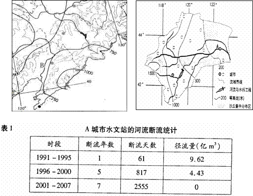 (3)据表1简要说明上世纪90年代以来该河上游水量的变化趋势,并解释其原因。(8分)