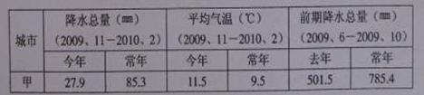 (2)结合所给材料简析该区域出现特大干旱的自然原因。(6分)