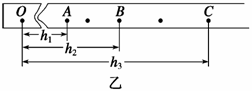 ①实验小组选出一条纸带如图乙所示,其中O点为打点计时器打下的第一个点,A、B、C为三个计数点,在计数点A和B、B和C之间还各有一个点,测得h1=