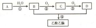 23、(8分)A是一种气态烃。B和D是生活中两种常见的有机物。以A为主要原料合成乙酸乙酯,其合成路线如下图所示: