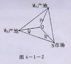 14、若生产1个单位重量的产品需2个单位重量的原料M1,1个单位重量的原料M2,那么工厂区位最好接近以下四点中的