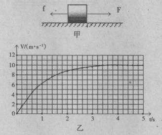 16.(10分)如图甲所示,足够大的水平面上静置一质量m=lkg的物体,若物体一旦运动就会受到一个阻碍物体运动的阻力f,且f=kV(k=lkg/s),现在给物体施加一个水平向右的恒定拉力F,并每隔0.2s测量一次物体的速度,乙图是根据所测数据描绘出物体的V-t图像。求: