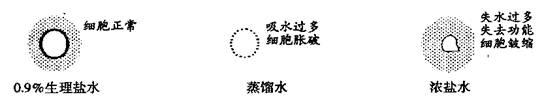 15.人体红细胞呈圆饼状,具有运输氧气的功能。下图是将人体红细胞分别放在三种不同的液态环境中一段时间内的变化示意图,分析该图得出的正确结论是 ( )