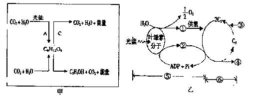 (10分)图甲示某些生物的一些生理过程,图乙为图甲A更为详细的过程图解。据图回答问题: