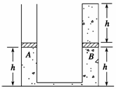 (2)(10分)图11中系统由左右两个侧壁绝热、底部导热、截面均为S的容器组成.左容器足够高,上端敞开,右容器上端由导热材料封闭.两个容器的下端由可忽略容积的细管连通. 容器内两个绝热的活塞A、B下方封有氮气,B上方封有氢气.大气的压强p0,温度为T0=273 K,两活塞因自身重量对下方气体产生的附加压强均为0.1p0.系统平衡时,各气体柱的高度如图所示.现将系统底部浸入恒温热水槽中,再次平衡时A上升了一定高度.用外力将A缓慢推回第一次平衡时的位置并固定,第三次达到平衡后,氢气柱高度为0.8h.氮气和氢气均可视为理想气体.求: