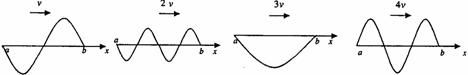 3.(2001)如图所示,有四列简谐波同时沿x轴正方向传播,波速分别是 v、2 v、3 v和 4 v,a、b是x轴上所给定的两点,且ab=l。在t时刻a、b两点间四列波的波形分别如图所示,则由该时刻起a点出现波峰的先后顺序依次是图 ;频率由高到低的先后顺序依次是图 。
