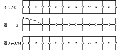 (2003)细绳的一端在外力作用下从t=0时刻开始做简谐运动,激发出一列简谐横波。在细绳上选取15个点,图1为t=0时刻各点所处的位置,图2为t=T/4时刻的波形图(T为波的周期)。在图3中画出t=3T/4时刻的波形图。