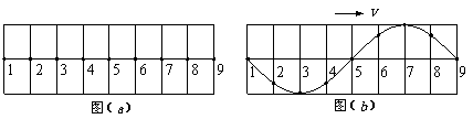 (2006)在均匀介质中选取平衡位置在同一直线上的9个质点,相邻两质点的距离均为L,如图(a)所示.一列横波沿该直线向右传播,t=0时到达质点1,质点1开始向下运动,经过时间Δt第一次出现如图(b)所示的波形.则该波的