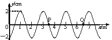 (2007)沿x轴正方向传播的简谐横波在t=0时的波形如图所示,P、Q两个质点的平衡位置分别位于x=3.5m和x=6.5m处。在t1=0.5s时,质点P恰好此后第二次处于波峰位置;则t2=_________s时,质点Q此后第二次在平衡位置且向上运动;当t1=0.9s时,质点P的位移为_____________cm。