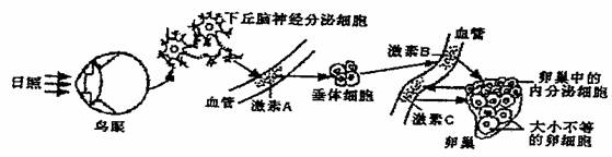 12.鸟类的繁殖大多在春天进行的,具有时间为一年的性周期。下图为某一鸟类体内一个性周期的激素调节过程。下列说法正确的是 ( )