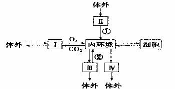 15.下图表示人体细胞与外界环境之间进行物质交换的过程,Ⅰ、II、III、Ⅳ表示能直接与内环境进行物质交换的4种器官,①②是有关的生理过程。下列说法错误的 ( )