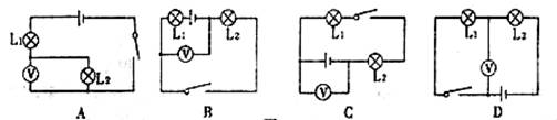 3. 如图所示,当开关闭合时用电压表能测出灯L1两端的电压的是( ).