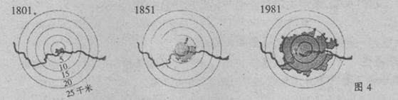 读“英国首都伦敦的城市变化图”(图4),回答第8-9题。