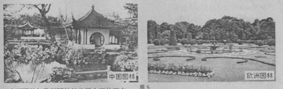 中国园林与欧洲园林存在较大差异,读图5,回答10-11题。