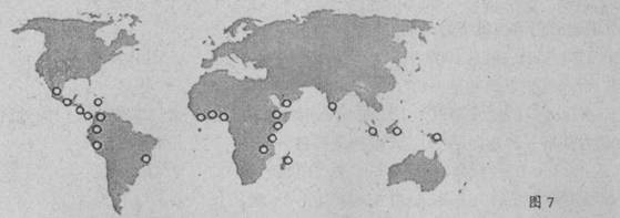 读“世界咖啡主要产地分布图”(图7),回答16-17题。