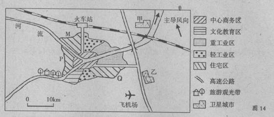 27.下图是“我国某特大城市示意图”(图14)。读图回答下列问题(13分)