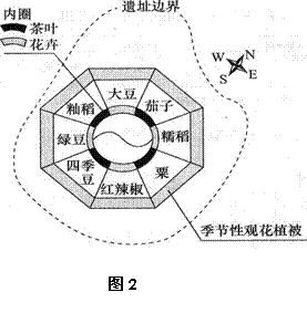 我国某城市的年降水量近1400毫米,年均温约1 6°C。该城市中心区有我国某朝代皇帝“躬耕"以示“劝农”的籍田遗址。近期该城市在城区仿建了八卦农田约l 5 0亩。读图2回答3-4题。