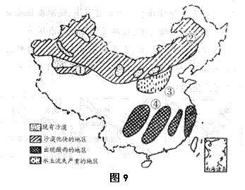 读图9,分析回答我国一些地区出现的环境问题原因及影响。