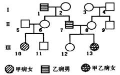 C.Ⅲ13的乙病基因,最初分别来自Ⅰ1和Ⅰ3