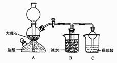 参照表中数据,请分析B装置中使用冰水是为 。(3)该校学生在检查完此套装置气密性后进行实验,结果没有得到碳酸氢钠晶体,指导教
