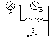 如图9所示电路中,L为电感线圈,电阻不计,A、B为两灯泡,则