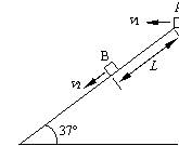 (2006)如图所示.一足够长的固定斜面与水平面的夹角为37°,质点A以初速度v1从斜面顶端水平抛出,质点B在斜面上距顶端L=15m处同时以速度v2沿斜面向下匀速运动,经历时间t物体A和物体B在斜面上相遇,则下列各组速度和时间中满足条件的是(sin37°=0.6,cos37°=0.8,g=10 m/s2)