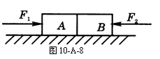如图10-A-8所示,两个质量相同的物体A和B紧靠在一起,放在光滑的水平面上.若两物体同时受到大小分别F1和F2(F2>