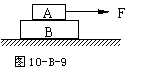 如图10-B-9所示,物体A放在物体B上,物体B放在光滑的水平面上,已知mA=6kg,Mb=2kg,A、B间动摩擦因数μ=0.2,A物上系一细线,细线能承受的最大拉力是20N,水平向右拉细线,假设最大静摩擦力等于滑动摩擦力。下述中正确的是(g=10m/s2)