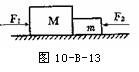 11.如图 10-B-13,M>m,两个推力F1=10N,F2=4N,水平支持面光滑,求M对m的作用力的范围.