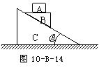 12.如图10-B-14所示,斜面C与木楔B的接触面光滑。C固定在地面上,其倾角θ=37º,质量为m=0.5kg的物体A置于B上,A、b接触面粗糙且水平。当A、b保持相对静止-同沿斜面C下滑时.求B对A的静摩擦力。