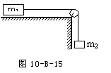 13..如图10-B-15.放在水平桌面上的滑块质量m1=1.5kg,通过定滑轮用细线与质量m2=0.5kg的物体相连,m1的加速度为1.5m/s2,试求: