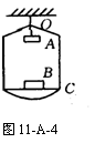 2.如图11-A-4中,A为电磁铁、C为胶木秤盘,A和C(包括支架)的总质量为M,B为铁片,质量为 m,整个装置用轻绳悬挂于O点,当电磁铁通电,铁片被吸引上升的过程中,轻绳上拉力F的大小为 ( )