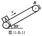如图11-B-11所示,倾角为30 º的传送皮带以恒定的速度2m/s运动,皮带AB长5m,将1kg的物体放在A点,经2.9s到达B点,求物体和皮带间的动摩擦因数μ为多少?若增加皮带的速度,则物体从A到B的最短时间是多少?