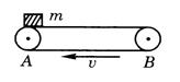 例3 带面水平的传送带以4m/s速度匀速运动,主动轮和被动轮的轴距12m.现将一物体m放在A轮的正上方(转动方向如图)所示,m和传带间的动摩擦因数为0.2,则该物体m经多长时间可运动到B轮的正上方.(取g=10m/s2) (J29)