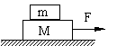6.如图所示,光滑水平面上叠放着质量为m、M的两物体,m与M间动摩擦因数为µ,如可将滑动摩擦力的大小视为最大静摩擦力,要使两者一起运动,F的最大值为 .(µ(M+m)g)